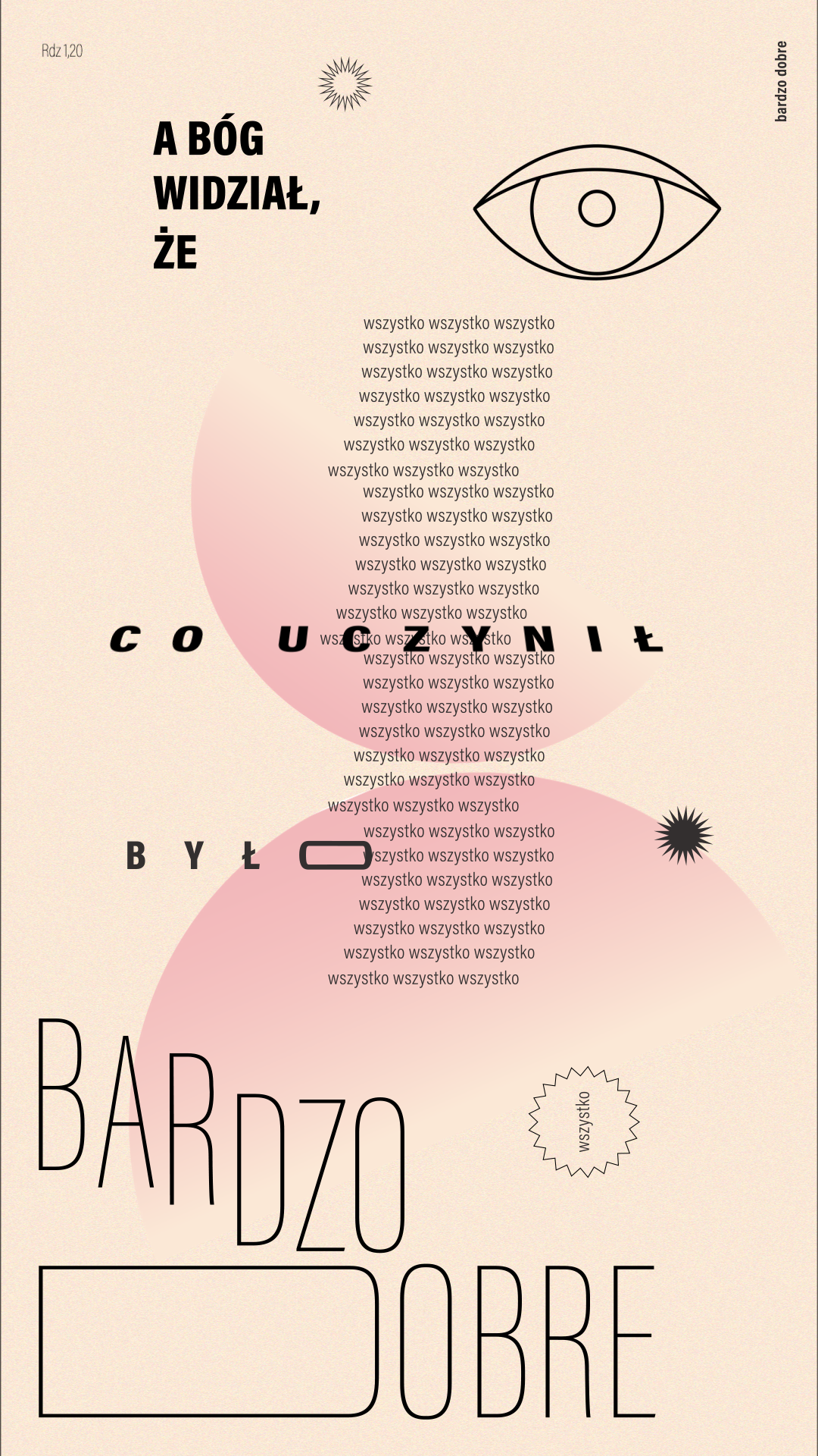 Moim celem było stworzenie animowanego plakatu do fragmentu z księgi Rodzaju: „A Bóg widział, że wszystko co uczynił było dobre”. Format miał być dostosowany do Ig Stories, reelsów czy YT short.